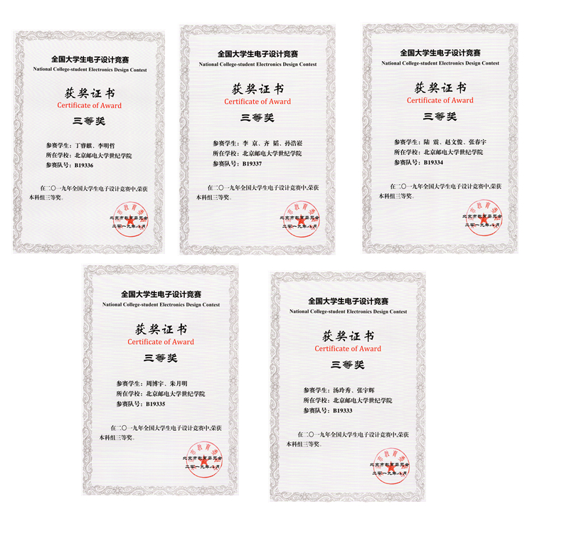 8月7日至10日,選手們經過4天3夜的連續奮戰,憑借扎實的專業知識、良好的創新設計能力和優秀的團隊協作精神,按照比賽要求順利完成了作品設計和制作。8月12日,參賽學生赴北京郵電大學進行作品測評和現場答辯,選手們發揮穩定,表現突出,通信與信息工程系學子榮獲三等獎5項的優異成績。這是我院自2009年參加此項賽事(全國大學生電子設計競賽)以來獲得獎項最多的一次。