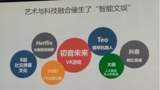 北京市政府信息化專家、國務院政府特殊津貼專家盛凌志博士從5G的基本原理、技術手段延伸到在5G時代背景下如何實現藝術與科技的融合進行了精彩紛呈的主題講座,盛博士認為藝術決定了科技呈現的大眾接受度,而“內容+IP+科技”的融合則是智能文娛的關鍵,并就藝術與技術融合催生的“智能文娛”展開探討,就如今現象級的抖音網紅直播、大疆人工智能無人機表演、Teo鋼琴機器人、初音未來VR游戲制作、VOID-VR主題公園、Netflix大數據自制劇、B站社交彈幕文化等進行分析,指出智能文娛將是5G環境下藝術創作的重大突破口。