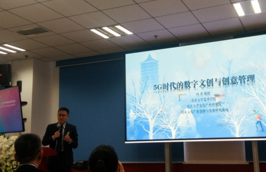 北京大學藝術學院教授、博士生導師、北京大學文化產業研究院副院長向勇向大家做了精彩的演講,以“科技向善、人文尋美、藝術求真”展開在5G時代下的數字經濟發展最新動向和趨勢,探討了5G時代的創意共生理念,如何通過將藝術審美、故事驅動、跨界創意、數字科技進行優化整合,從而實現藝術與技術的協同創新,并以北京大學研究人員開發的DAOZI AI系統做了生動的案例講解。