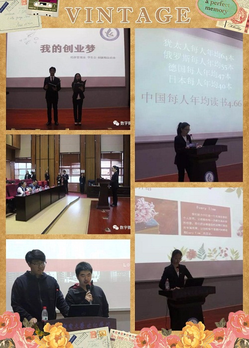 經過主持人的介紹后,比賽拉開了帷幕,各位參賽選手都做好了充分的準備。每位演講者上臺演示精心準備的PPT。第一組參賽者統計了各個國家人均年讀書量,他們希望中國人民也可以讀更多的書來豐富自己,他們想要開一個書吧,讓不喜歡讀書的人也愛上讀書!郭彬老師對他們進行了點評,并給予更合理化的建議。