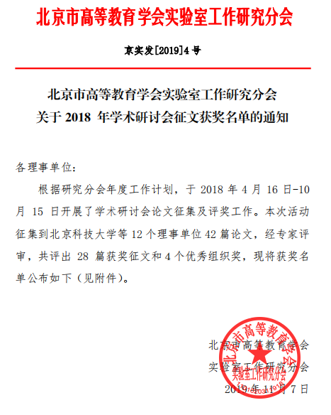 根據(jù)北京市教委、北京市高等教育學會和全國高校實驗室工作研究會2018年工作要點的精神,我院于2018年9月25日向北京市高等教育學會實驗室工作研究分會提交了5篇論文,經(jīng)專家評審,我院計算機科學與技術系教師李志剛投稿的《從中興事件看計算機組成原理實驗改進》榮獲征文三等獎,我院并同北方工業(yè)大學、北京郵電大學共同榮獲優(yōu)秀組織二等獎。