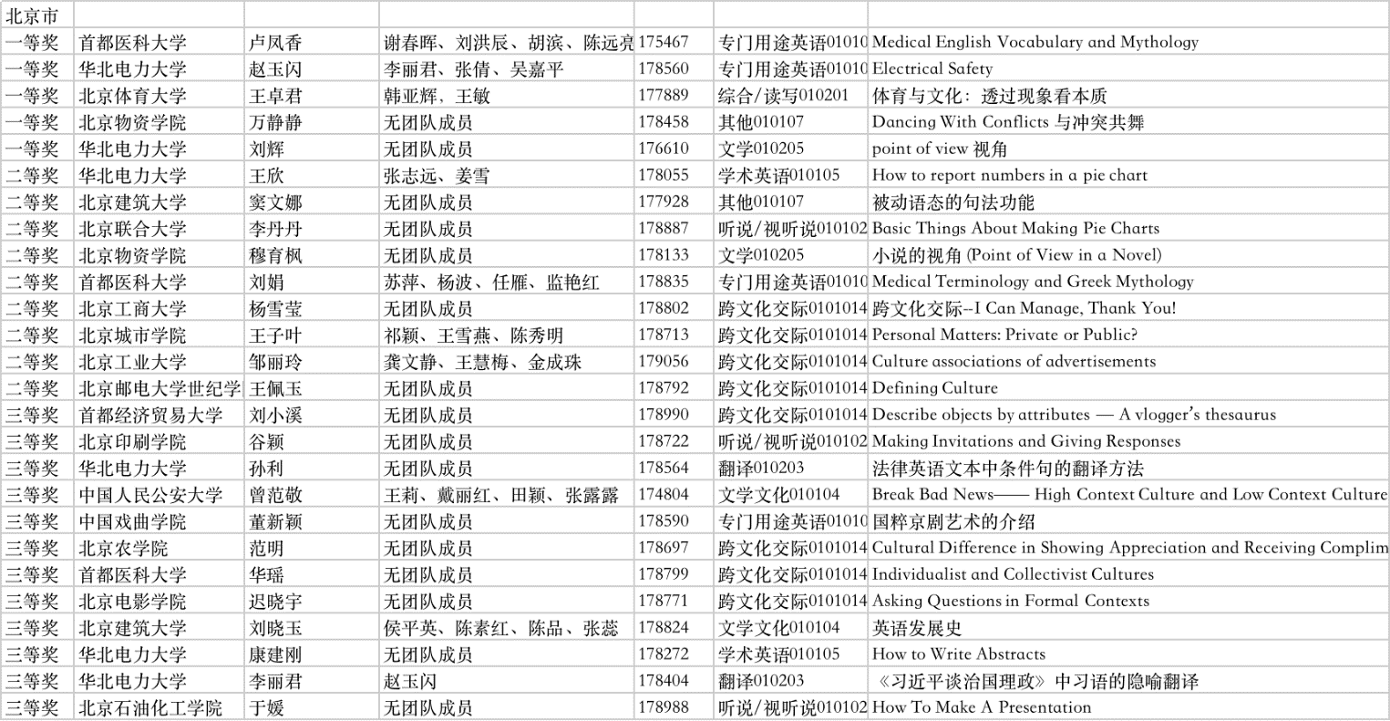 附:第五屆外語微課大賽北京地區復賽獲獎名單