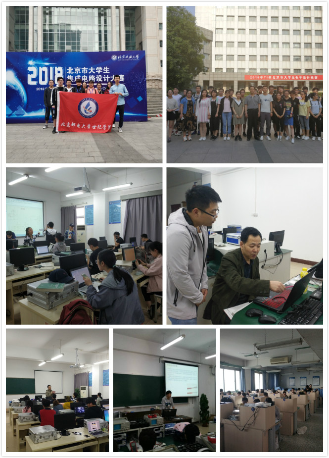 2018年北京市大學生電子設計競賽于6月1—3日舉行,共有35所設有電子類專業的高校的799隊分布在8個賽場競賽。學院共派出14隊28人參賽。本屆比賽是學院自2008年參賽(北京賽)以來獲得獎項最多的一屆。2018年北京市集成電路設計大賽于5月12日舉行,共有15所設有電子類專業的高校288隊參加,學院共派出5隊參賽。