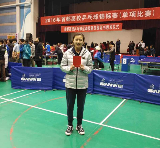 12月3-4日,在北方工業大學體育館舉辦的2016年首都高校乒乓球錦標賽中,我院選手任叢菁勇奪甲B組(非特招普通學生最高級別組)女子單打季軍。