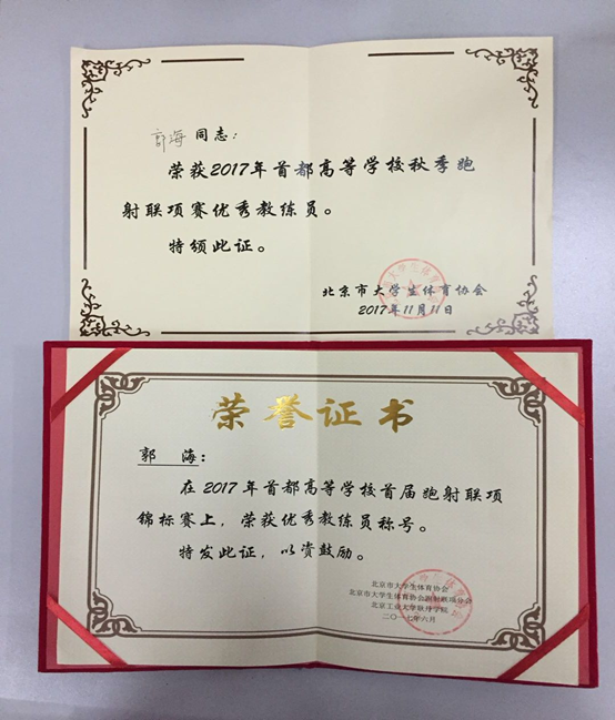 11月11日,在2017年全國高校第二屆跑射聯項錦標賽中,我院田徑隊獲得團體總分第四名、4x400米接力比賽第二名、男子2x400米第三名、女子3x800第五名和男子3x800第七名的好成績,基礎教學部郭海老師被組委會評為“優秀教練員”。