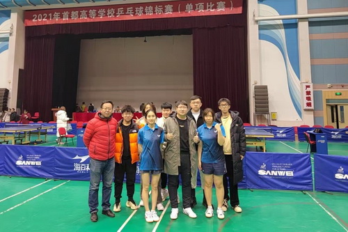 12月11、12日在北方工業大學體育館舉行了首都高校乒乓球單項錦標賽,我院乒乓球隊派出9名隊員參加此次錦標賽,獲得了女雙冠軍和女單第六名的好成績。特別值得一提的是王紫薇、鄧圣俐兩位同學參加的女子雙打,前兩年在此項目上我院均獲得冠軍,今年的奪冠使我院在雙打項目中取得三連冠,創造了學院參加省部級比賽連續奪冠的歷史。
