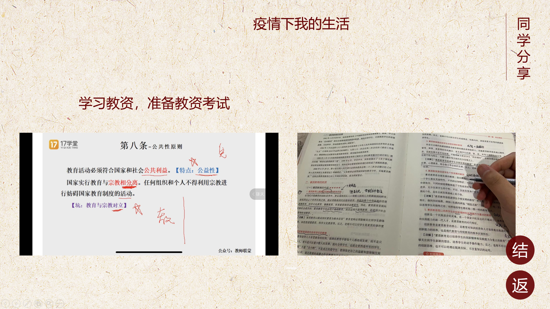 在共青團精神的引領下,青年不畏困難,勇敢向前!在這個不能返校的特殊時期,借助分享會的平臺,物流專業的同學代表們依次展示了他們在疫情居家期間的精彩生活:心靈手巧的王苗苗同學展示了自己的針織手工作品,既實用又美觀,引來同學們的贊嘆;充滿藝術細胞的吳晗同學向我們展示了她的繪畫作品,繪畫功底扎實,繪畫作品優美精良;同樣愛畫畫的李俊龍同學愛好畫動漫人物,一個個我們熟知的動漫形象躍然紙上;熱愛生活的劉宣同學這一次不僅跟我們分享了她傾情制作的甜點,顏值高味道美,更是分享了她在小區因疫情封閉時參加志愿服務的感人片段,同學們都感慨良多;勤懇務實的李楠杰同學夢想成為一名教書育人的老師,他利用課余時間投入教師資格證考試的準備中,并向同學們分享了許多備考的經驗;李佳怡同學在這個假期又get到了新技能,現在的她不僅可以把喜歡的小公仔畫出來,更是可以捏出一個栩栩如生的3D形象,真是一個集顏值與實力于一身的好團支書;父母的小棉襖吳瀧同學在家苦練廚藝,已經成為家庭的廚房積極分子,廚藝也是肉眼可見的進步!
