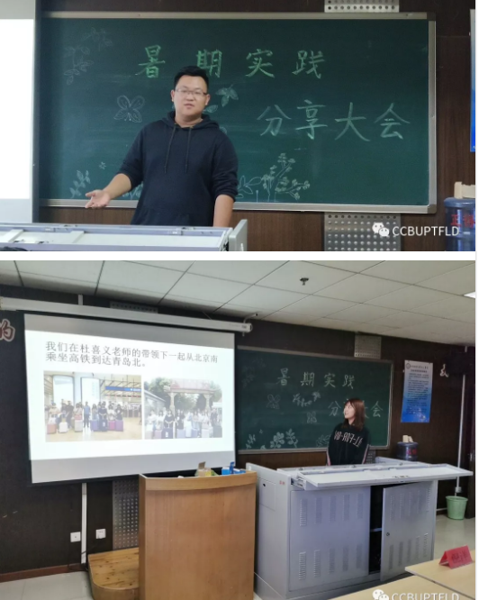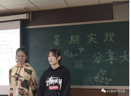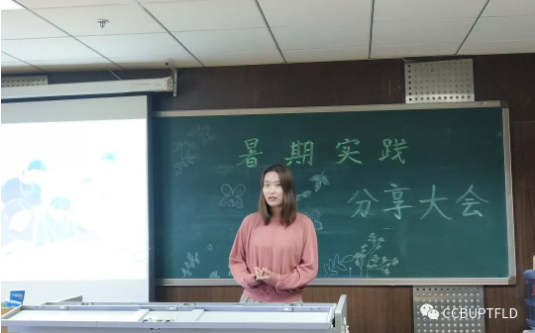 個(gè)人實(shí)踐分享同樣精彩。韓天星分享了她在北京外國(guó)語大學(xué)實(shí)踐的那段時(shí)光。介紹她如何參與面試,成功加入到志愿者的一員的過程。她的經(jīng)驗(yàn)告訴我們不要膽怯,要學(xué)會(huì)勇敢嘗試,不試試怎么知道自己行不行呢?