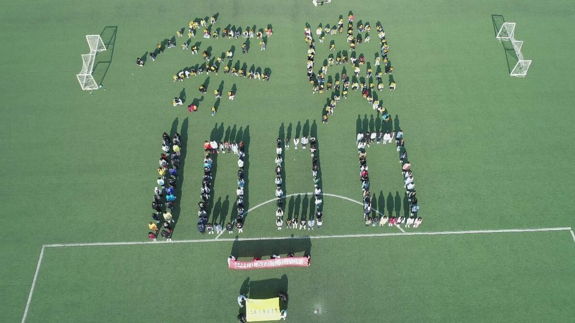 傳媒學院300余人在操場上拼出“冬奧 1000”的字樣,以此方式喜迎冬奧會的召開。