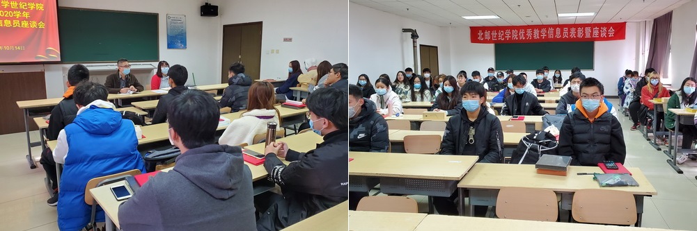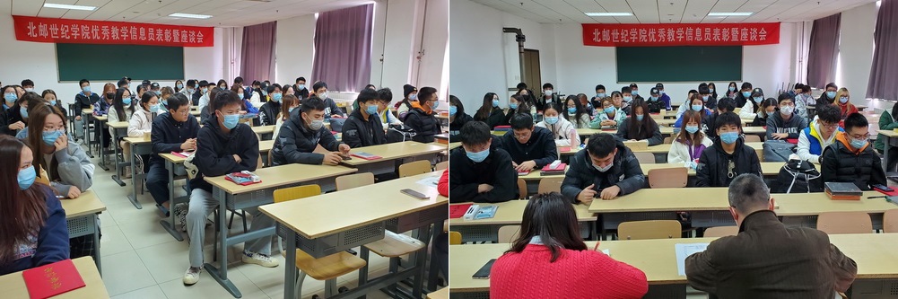 2019年10月14日中午12:00,我院在明德樓426教室召開2019-2020學(xué)年第二學(xué)期優(yōu)秀教學(xué)信息員表彰暨學(xué)生座談會(huì)。教務(wù)處副處長(zhǎng)劉鋒及相關(guān)工作人員、2019-2020學(xué)年優(yōu)秀學(xué)生信息員參加了本次會(huì)議。座談會(huì)上,劉鋒副處長(zhǎng)對(duì)我院上學(xué)年優(yōu)秀信息員的工作表示肯定,感謝同學(xué)們?yōu)榻虒W(xué)信息收集和反饋工作所付出的努力,鼓勵(lì)他們?cè)俳釉賲?,繼續(xù)做好教學(xué)信息員相關(guān)工作。劉副處長(zhǎng)希望同學(xué)們?cè)趯?duì)教師、教學(xué)評(píng)價(jià)活動(dòng)中盡量做到具體詳細(xì),如實(shí)反映本學(xué)期教學(xué)活動(dòng)中存在的共性問(wèn)題以及值得鼓勵(lì)宣傳的好的意見和建議。