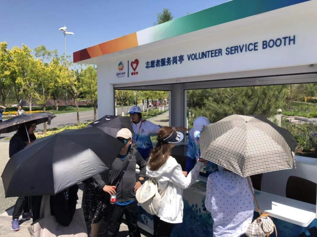 5月23日,京城開啟“高烤”模式,但是絲毫不影響游客對世園會的熱情,游客紛紛通過打傘、戴帽子等方式遮陽防曬。傳媒院105名志愿者迎接高溫挑戰,接過了服務接力棒,在“高烤”溫度下圓滿完成了世園會志愿者服務工作。在志愿工作中,志愿者分為41個小組,分布在園區內外各個工作崗位,盡自己所能服務于世園。據悉,北京市氣象臺已于日前發布高溫黃色預警,北京大部分地區日最高氣溫將達35°以上,其中23日局部地區最高氣溫可達40°。盡管天氣炎熱,但卻絲毫沒有影響志愿者的悉心服務,他們迎著驕陽,用汗水澆灌出了世園會最亮眼的“風景線”。