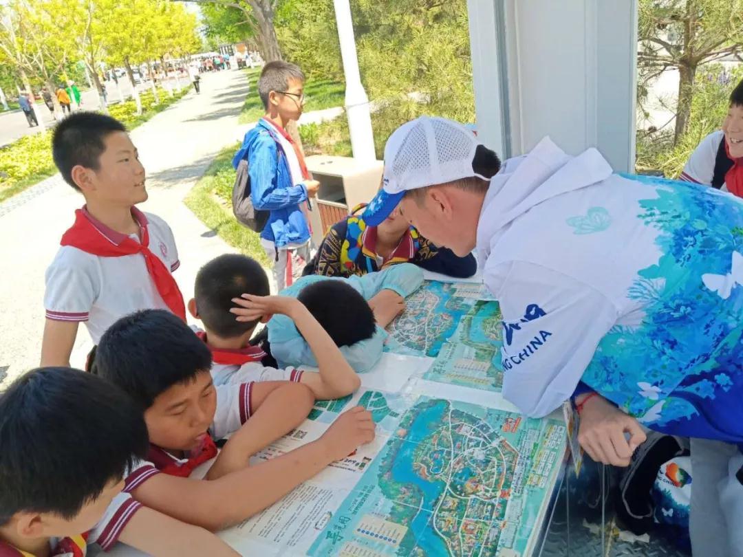 清晨6時許,志愿者們已經精神抖擻,整裝待發,懷著滿滿的熱情與信心,準備開始一天的志愿服務工作。開園之后,面對成千上萬的游客,志愿者們以最快的速度進入服務狀態,從容不迫地解決問題、執行任務。準確的指明方向,輕車熟路地介紹最佳游覽路線,講解起來神采奕奕、頭頭是道,為游客游玩提供極大的便利,更甚有許多游客主動要求與志愿者合照,留下紀念。