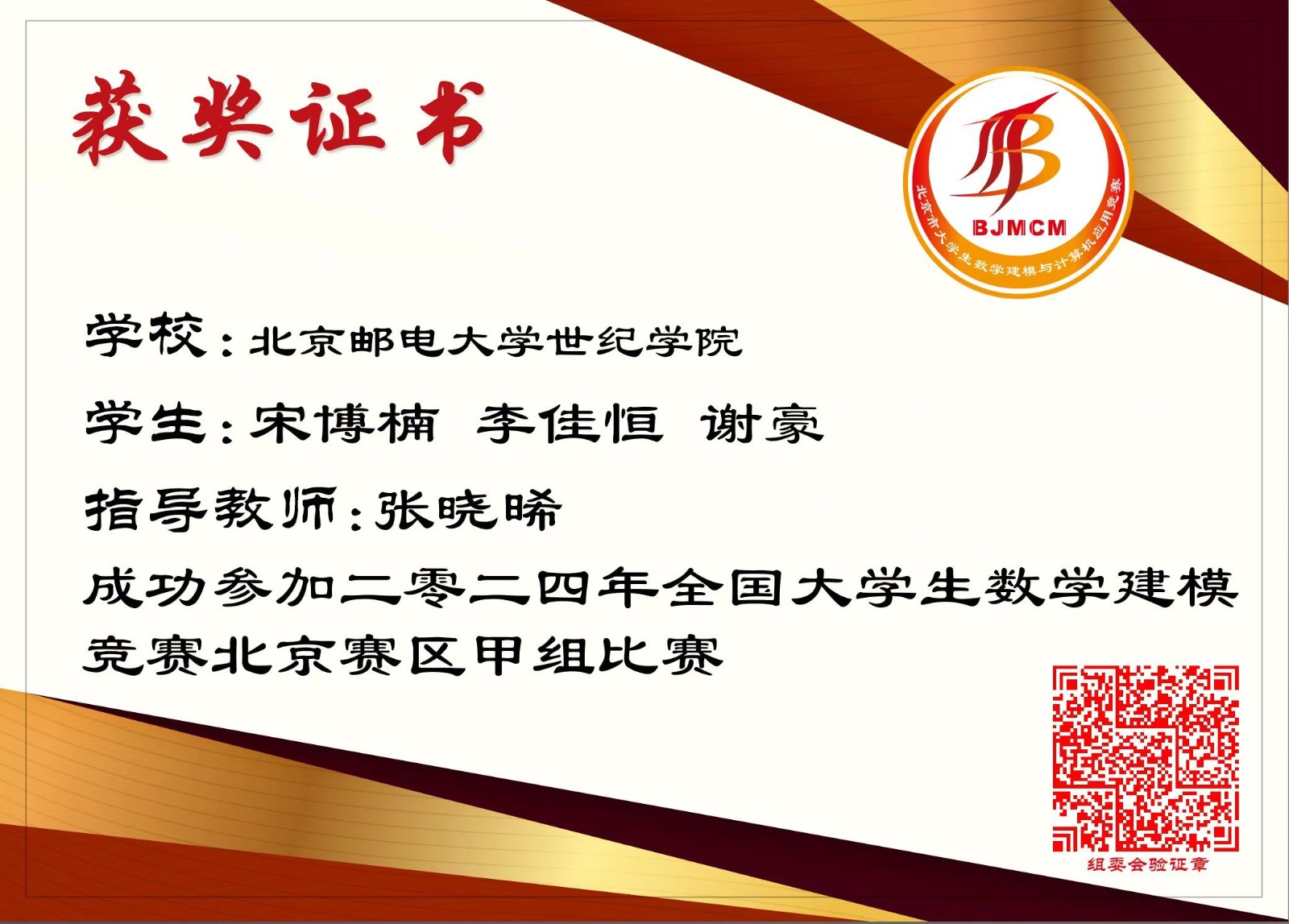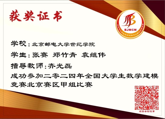 近日,2024年全國大學生數學建模競賽成績揭曉,學院學子在此次競賽中展現了卓越的數學建模能力和團隊協作精神,1個隊伍榮獲北京市二等獎,14個隊伍榮獲北京市三等獎。