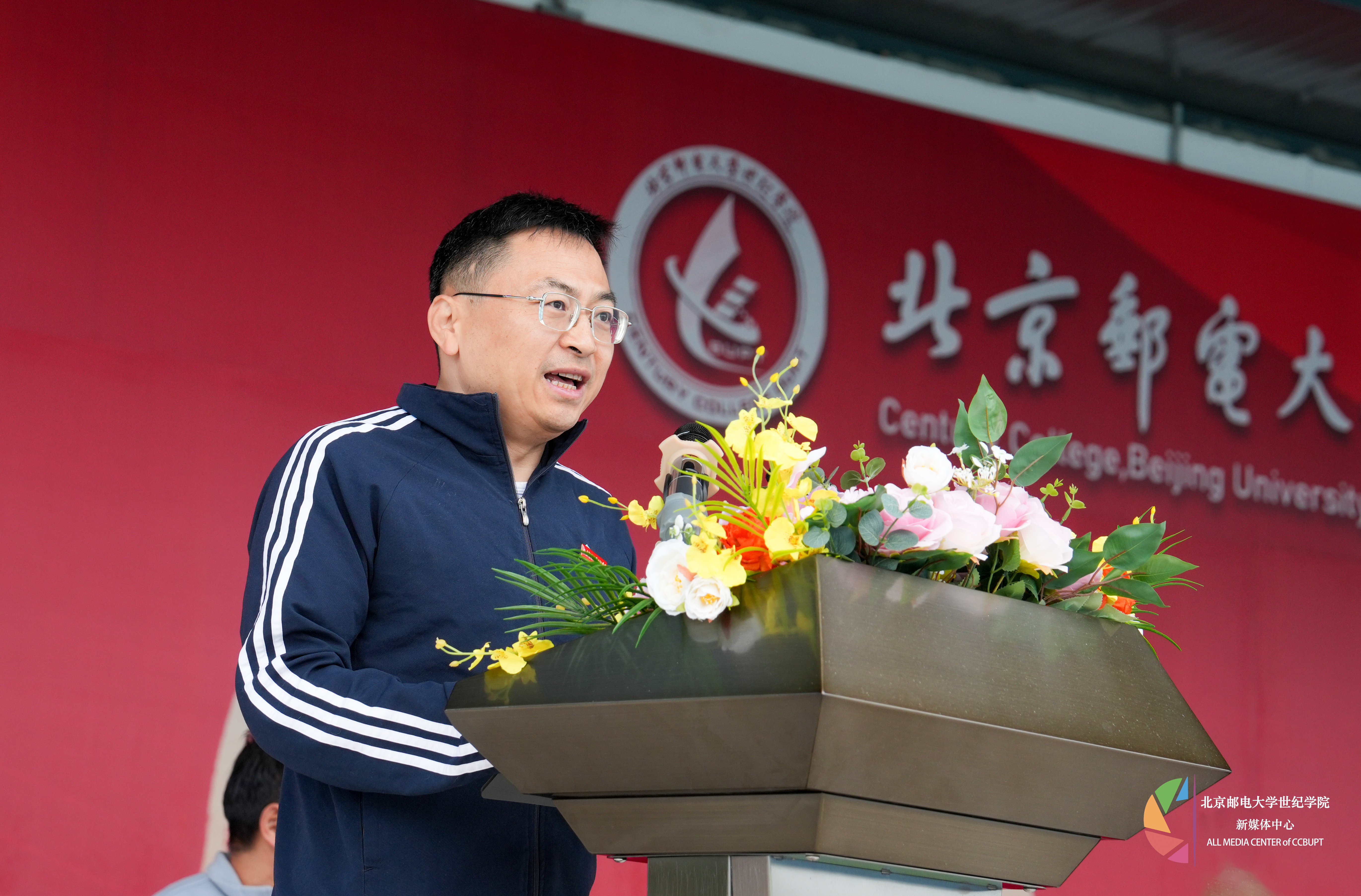 莊嚴(yán)的升國旗儀式后,謝苗峰院長宣布北京郵電大學(xué)世紀(jì)學(xué)院第十八屆春季田徑運(yùn)動(dòng)會(huì)正式開幕。王常軍書記代表體育運(yùn)動(dòng)委員會(huì)為本屆運(yùn)動(dòng)會(huì)致開幕詞。校友代表王志凱分享了自己的校園時(shí)光與創(chuàng)業(yè)歷程,并為運(yùn)動(dòng)會(huì)及母校20周年院慶送上真摯祝福。運(yùn)動(dòng)員代表李博洋、裁判員代表馬會(huì)會(huì)依次進(jìn)行宣誓。
