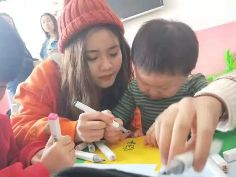 經(jīng)過了兩個小時的路程,志愿者們來到位于延慶區(qū)沈家營鎮(zhèn)的后呂莊村明聲康復(fù)教育中心,孩子們看到志愿者都十分開心和激動。志愿者們將事先準(zhǔn)備好的彩紙及彩筆分發(fā)給小朋友們,并手把手的教小朋友們做紙飛機(jī)等各種小手工,大家充分發(fā)揮專業(yè)優(yōu)勢,幫助小朋友們完成了一幅又一幅的作品。看著自己的作品,小朋友們露出滿意的笑容。