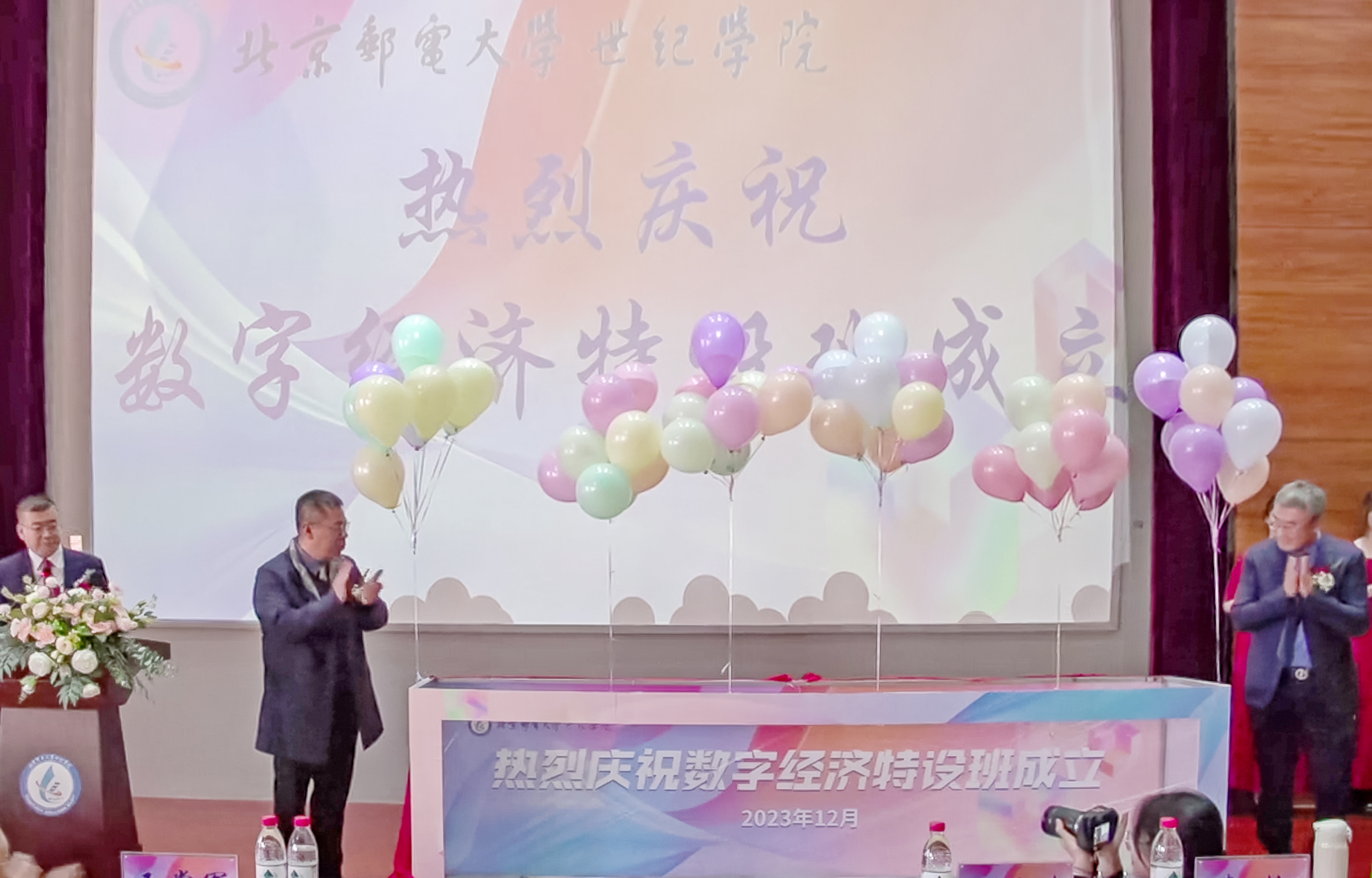為響應數字中國的大戰略,進一步發揮學院“數字科技”的辦學特色,創新培養模式,暢通產教融合之路,學院特設立數字經濟特設班。12月9日上午10:00,學院在圖書館三層報告廳舉辦數字經濟特設班成立儀式暨導師聘任儀式。出席本次儀式的嘉賓及領導有北京郵電大學教授、博士生導師楊學成,學院院長謝苗峰,黨委書記王常軍,副院長李新松、孫凱,院長助理周偉,數字經濟特設班即將聘任的客座教授與產業導師,經濟管理系教師代表以及來自各系(院)、各專業的同學們。