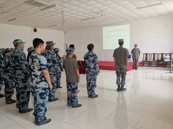 2019年8月18日我院老生軍訓補訓學生由輔導員何進鄖、胡桐彬帶隊前往八達嶺軍訓基地進行軍訓補訓任務,并在前兩天進行了補訓學生返校簽到、服裝發放和補訓動員教育。