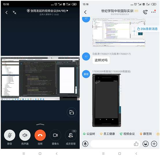 17-18級第一周線上教學(xué),經(jīng)過上學(xué)期一個學(xué)期的磨合,本學(xué)期遠程網(wǎng)絡(luò)課程順利有序開展。企業(yè)實踐課授課教師實踐經(jīng)驗豐富,課前指導(dǎo)學(xué)生安裝軟件,課程中密切交流互動,帶動學(xué)生緊跟老師步伐敲代碼練習(xí)。