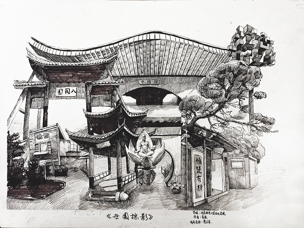 《世園掠影》19藝術1班李果 畫