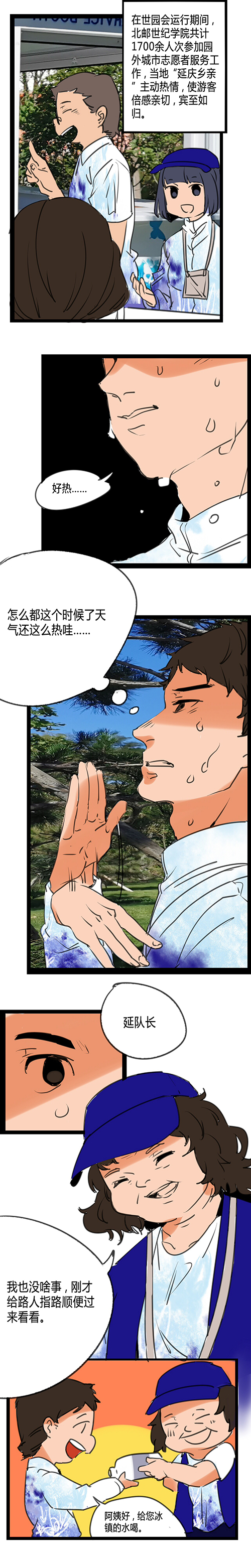 由傳播學與數字媒體藝術專業師生組成的《精彩世園》漫畫創作團隊,通過12個專題的漫畫與2個視頻短片描繪志愿者歷程,刻畫出志愿者們在志愿服務的過程中的付出與收獲,從而召集更多的人來加入志愿服務的行列,為社會為國家奉獻出自己的一份力量。同時,通過這次世園會參與的各項活動,充分展現了北郵世紀學院在區域經濟發展中所做的貢獻,為我校的辦學特色和教學發展添加了濃墨重彩的一筆。