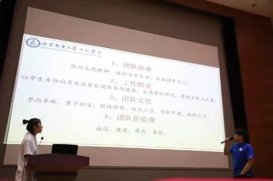 此次交流大會(huì)一共分為兩個(gè)部分,第一部分各系進(jìn)行暑期社會(huì)實(shí)踐活動(dòng)成果ppt展示并交流暑期社會(huì)實(shí)踐心得感悟,第二部分評(píng)委代表對(duì)暑期社會(huì)實(shí)踐作總結(jié)及點(diǎn)評(píng)。在同學(xué)們展示的過程中,有的人講述了軍旅生活的酸甜苦辣,有的在分享支教生活中“感謝相遇,山水一程,三生有幸”的難忘回憶;還有的犧牲暑假實(shí)踐投身學(xué)院的招生錄取工作,為學(xué)院的招生錄取貢獻(xiàn)自己的力量。