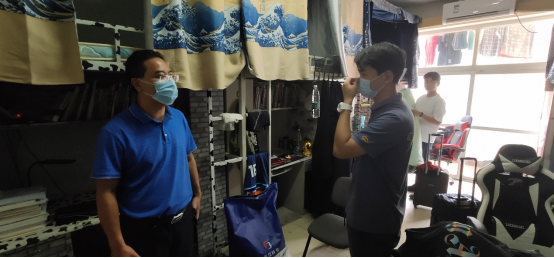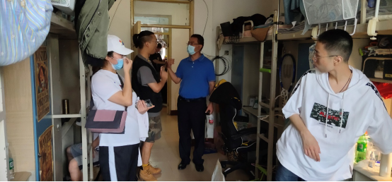 學生返校當天下午,系領導和輔導員老師們紛紛走訪宿舍,了解學生的返校情況、最近動態,為返校學生帶來了通信系回“家”的問候,并提醒同學們返校后每日三次的通風消毒,真正的做到疫情防控常態化。