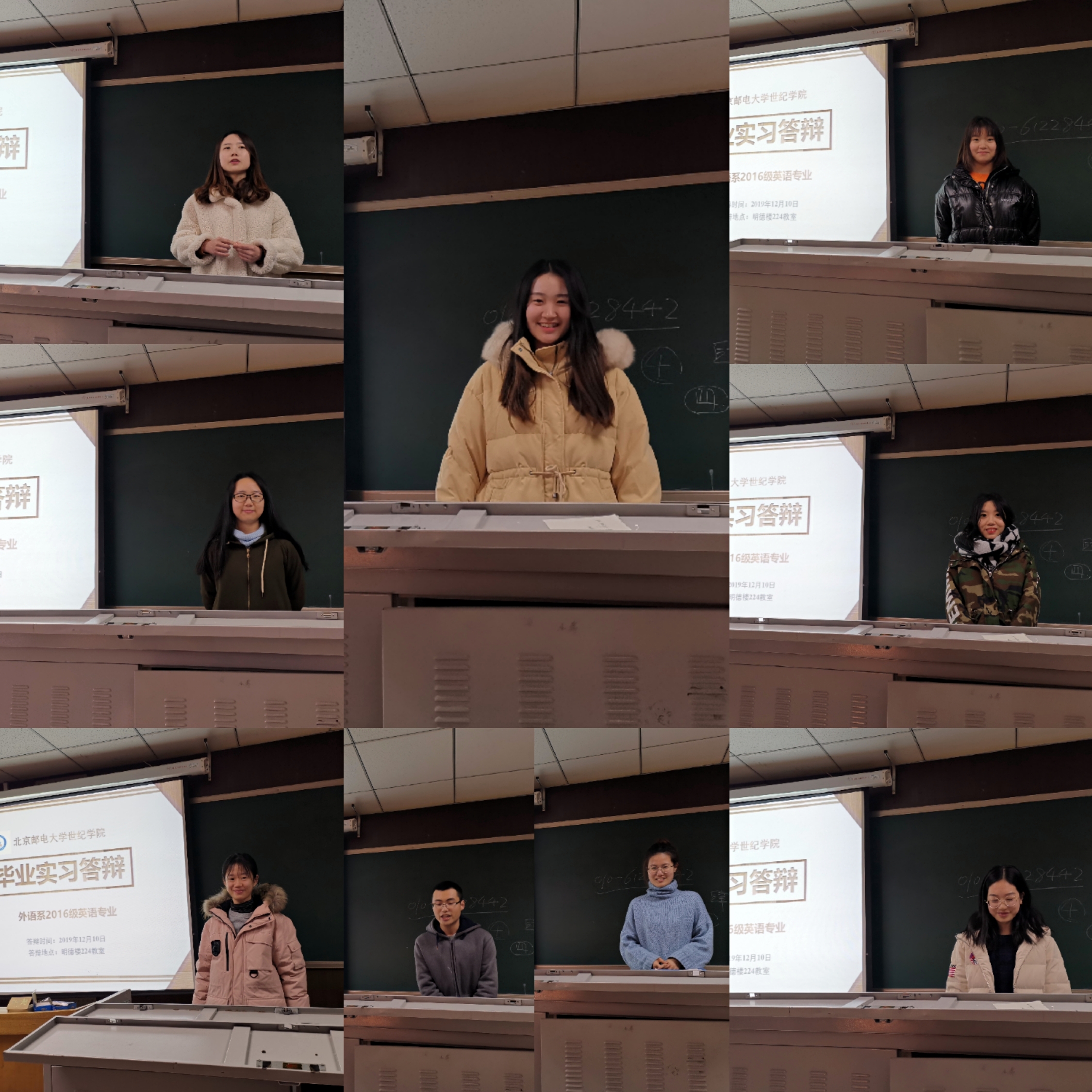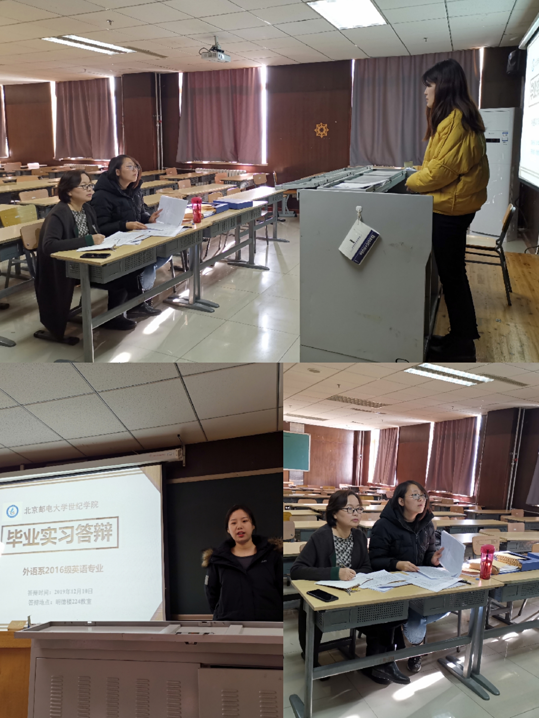 答辯期間,秦罡引老師結合同學們的答辯內容,提出了許多有價值的問題并給出了讓同學們受益匪淺的建議。實習負責老師王佩玉說:實習是結束大學生涯的最后一步,也是人生道路新的開端。在這次答辯中,同學們都找到了自己的新目標、新方向,有些人選擇參加工作來磨練自己,有些人選擇繼續深造學業來提高自己的專業水平,豐富自己的專業知識,也有些人另辟蹊徑,自主創業。我們為同學們取得的優良成績感到高興,感到欣慰。同時,也希望大家再接再厲,認真按要求完成接下來畢業論文的各個環節,珍惜自己的大學時光,用專業的水平和豐富的知識開創自己美好的未來!(外語系 王佩玉供稿)