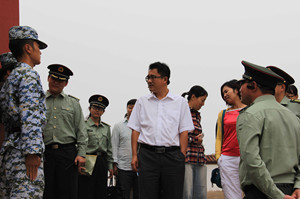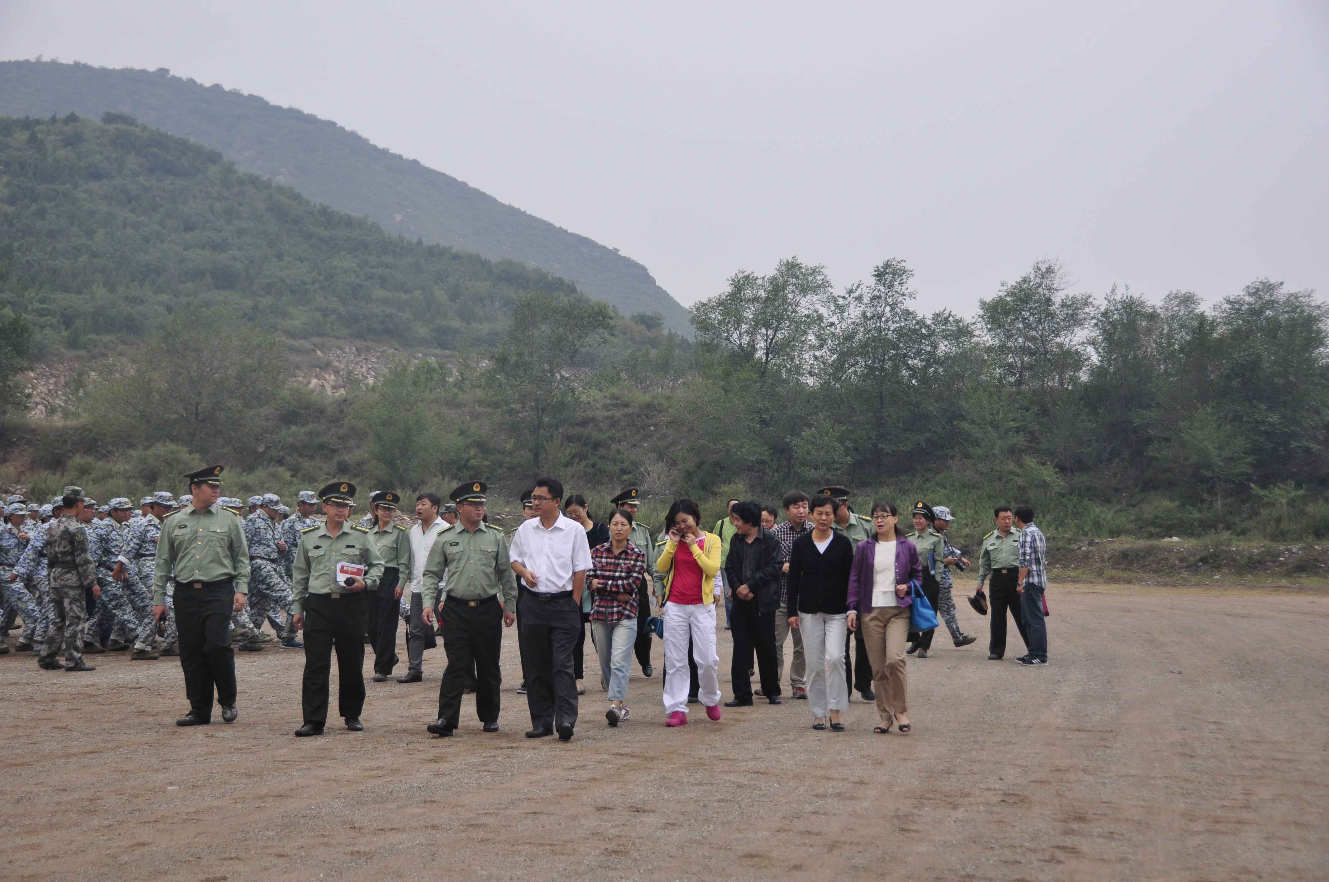 8月29日十點,學(xué)院領(lǐng)導(dǎo)一行來到八達嶺軍訓(xùn)基地,慰問2014級軍訓(xùn)團所有教師及學(xué)生。參加此次慰問的領(lǐng)導(dǎo)有學(xué)院黨委副書記兼副院長孫凱,綜合辦主任周偉,招生與就業(yè)處處長宋向陽、副處長王帥,教務(wù)處副處長王平,學(xué)生處副處長吳壽清,后勤處副處長周文照,藝術(shù)與傳媒學(xué)院院長胡杰,通信與信息工程系主任張茹,計算機科學(xué)與技術(shù)系副主任邢俊英,電子與自動化系副主任郭超,經(jīng)濟管理系副主任師蕾,外語系副主任賀貝,藝術(shù)與傳媒學(xué)院團總支書記姬世祥,通信與信息工程系輔導(dǎo)員楊松亮以及后勤處老師楊光等。