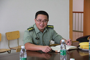 軍訓(xùn)工作匯報會現(xiàn)場 軍訓(xùn)團政委杜欣做工作匯報