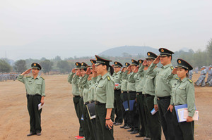 軍訓(xùn)團全體師生在學(xué)生處處長、軍訓(xùn)團政委杜欣的帶領(lǐng)下,列隊熱烈迎接了各位領(lǐng)導(dǎo)的蒞臨。孫副院長一行,首先參觀了學(xué)生宿舍,對學(xué)生的內(nèi)務(wù)給予高度評價,親切慰問了病號,關(guān)心他們的身體情況,叮囑他們要多注意身體。領(lǐng)導(dǎo)們還慰問了在軍訓(xùn)第一線工作的各指導(dǎo)員、隨團醫(yī)護人員,并聽取了軍訓(xùn)團所做工作匯報。隨后,領(lǐng)導(dǎo)一行到達學(xué)生訓(xùn)練場,對教官表示感謝,并與在訓(xùn)學(xué)生親切交流。