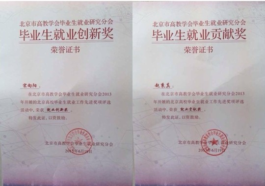 近日,我院招生與就業處處長宋向陽榮獲2013年度北京高校畢業生就業工作畢業生就業創新獎,副處長趙秉真榮獲畢業生就業貢獻獎。此次評選活動由北京市教委主辦,北京市高教學會承辦的。