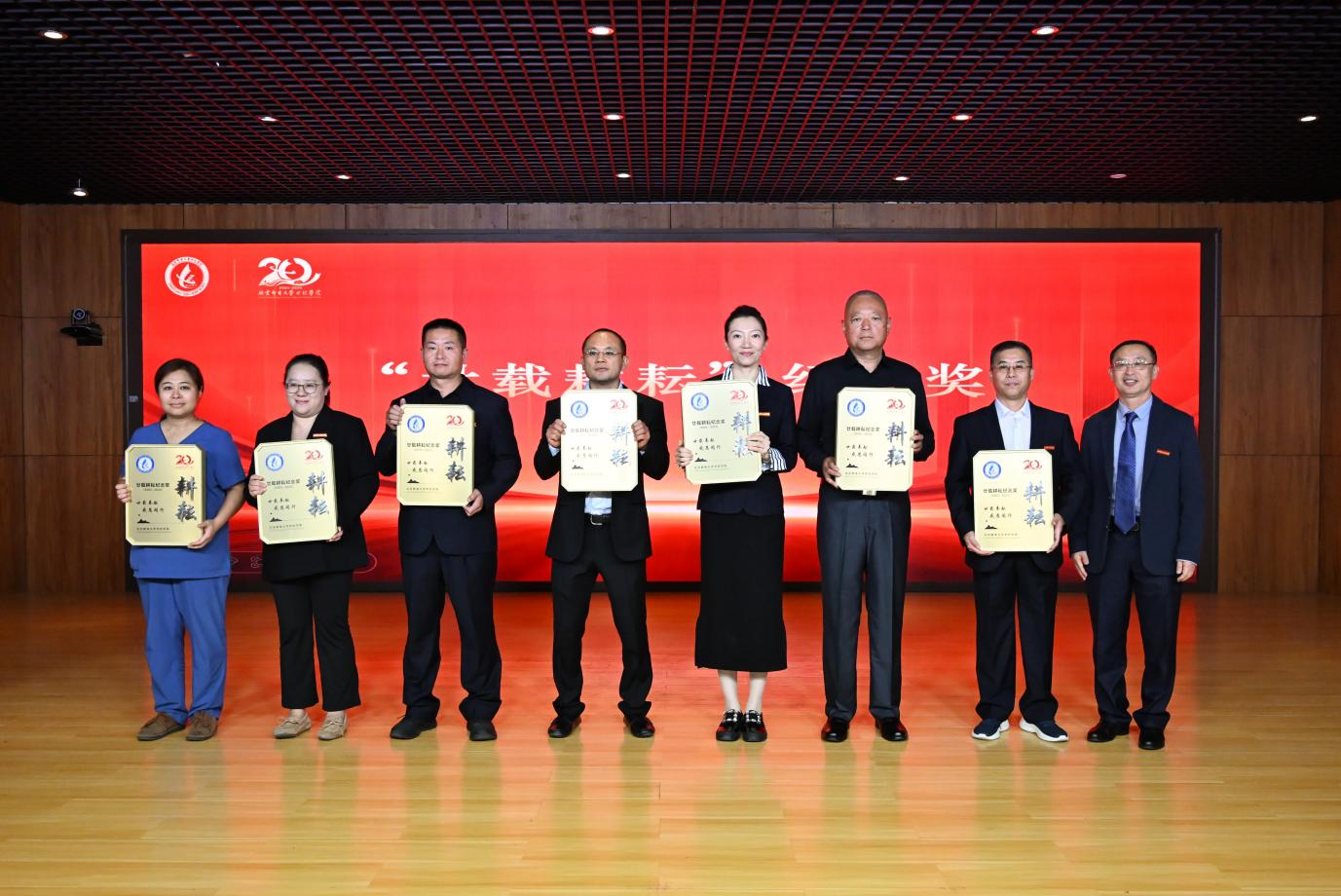 黨委書記王常軍為“廿載耕耘”紀念獎獲獎者頒獎