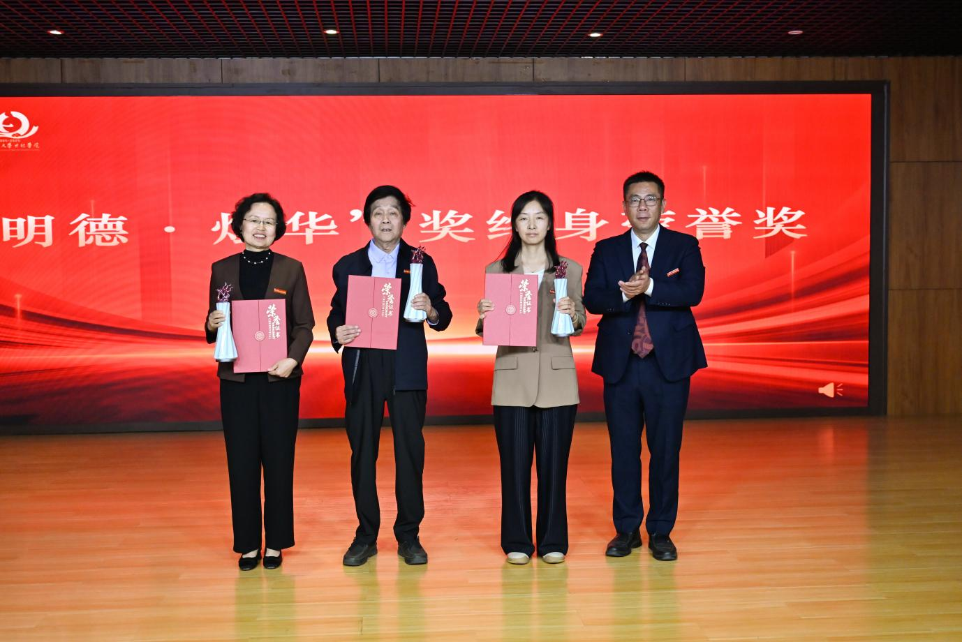 院長謝苗峰為“明德·燭華”獎終身榮譽獎獲獎者頒獎