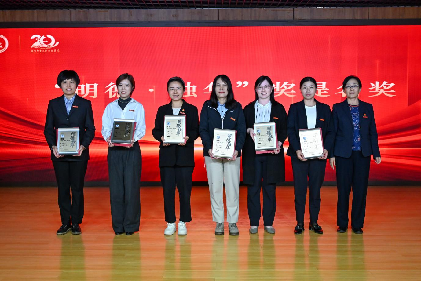 大會隆重表彰了“廿載耕耘”紀念獎和學院首屆“明德·燭華”獎獲獎人員,致敬用20年的堅守與奉獻見證學院成長的教職工,也致敬在三尺講臺以心血持續書寫育人篇章的一線教師。