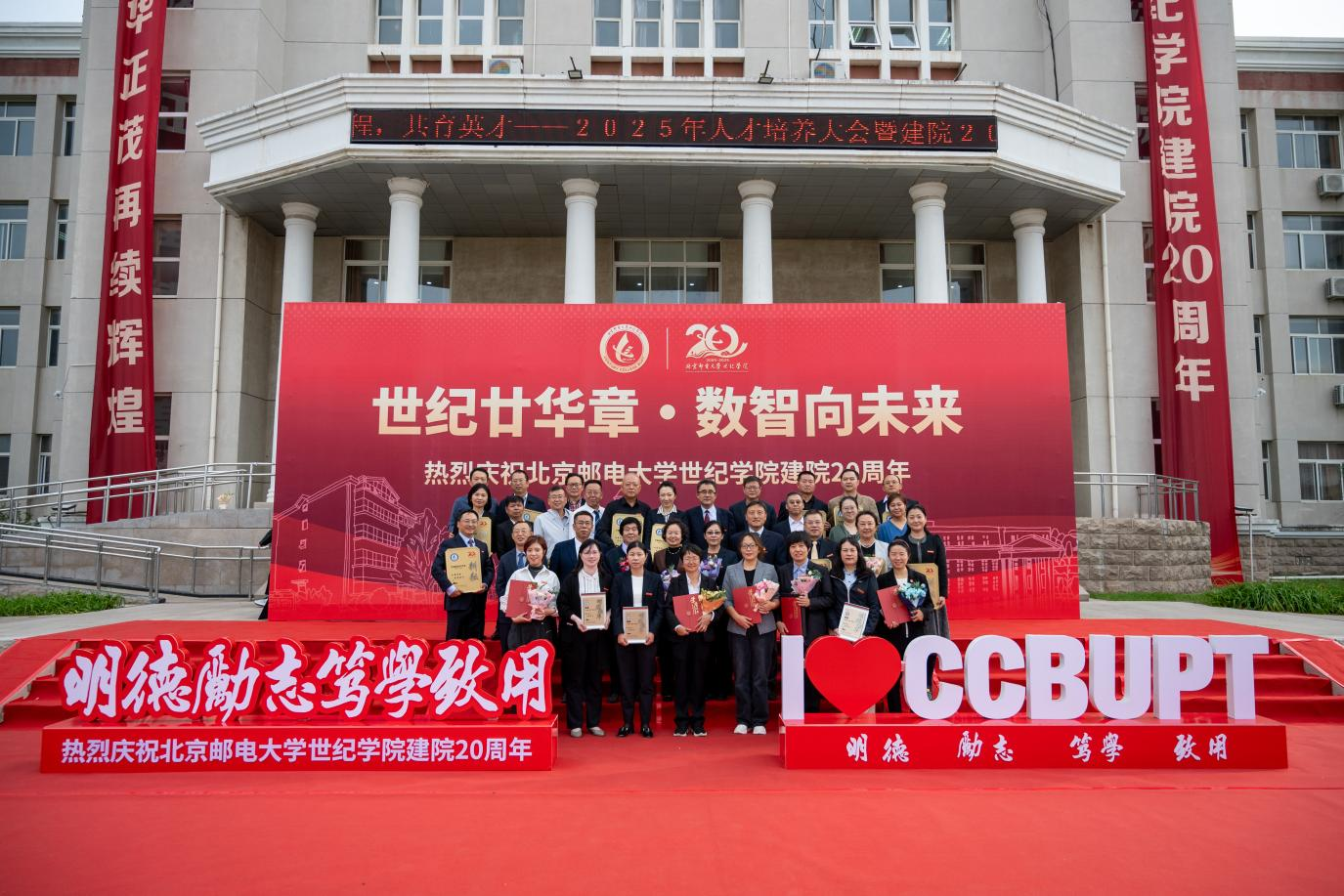 2025年9月26日,北京郵電大學世紀學院2025年人才培養暨建院20周年表彰大會在學思樓127報告廳隆重舉行。大會以“智啟新程 共育英才”為主題,系統總結學院二十載辦學育人成果,深度探索應用型人才培養路徑,擎畫高質量發展藍圖,為下一階段教育教學改革指明方向。學院全體教職工齊聚一堂,共同見證這一里程碑意義與未來導向兼具的重要時刻。