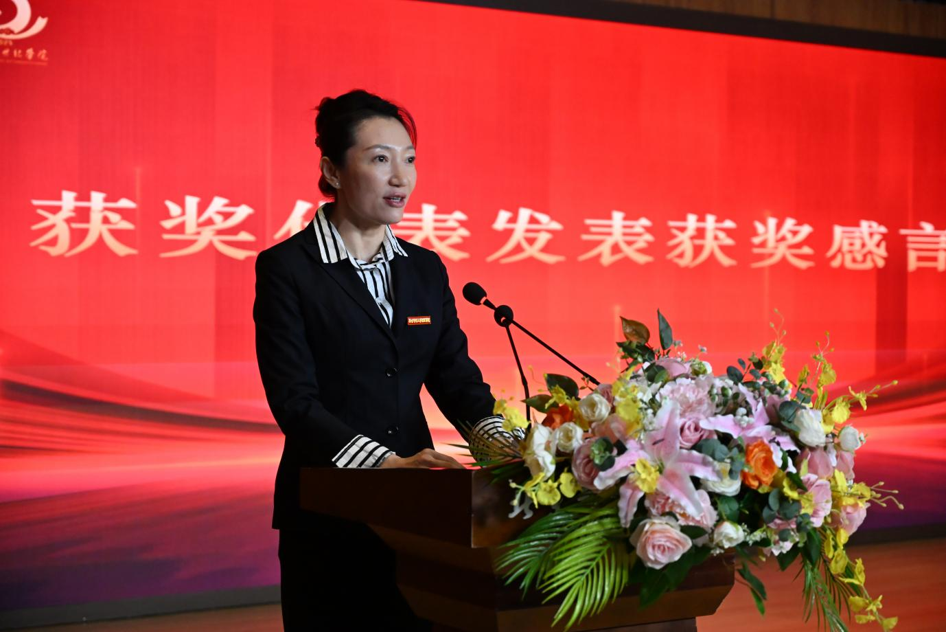 學生代表向前排獲獎教師及院領導、黨委委員獻花,鮮花與掌聲中,尊師重教的校園文化氛圍愈發濃厚。