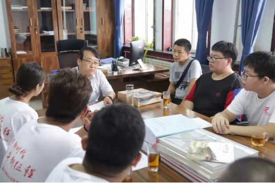 下午與長治市蔭城古鎮(zhèn)文化旅游發(fā)展有限公司董事長郭向榮進(jìn)行座談,隊員們將前期準(zhǔn)備的材料、logo設(shè)計、講解詞等初稿提交,鎮(zhèn)長非常肯定初期工作,并表示期待后期成果。