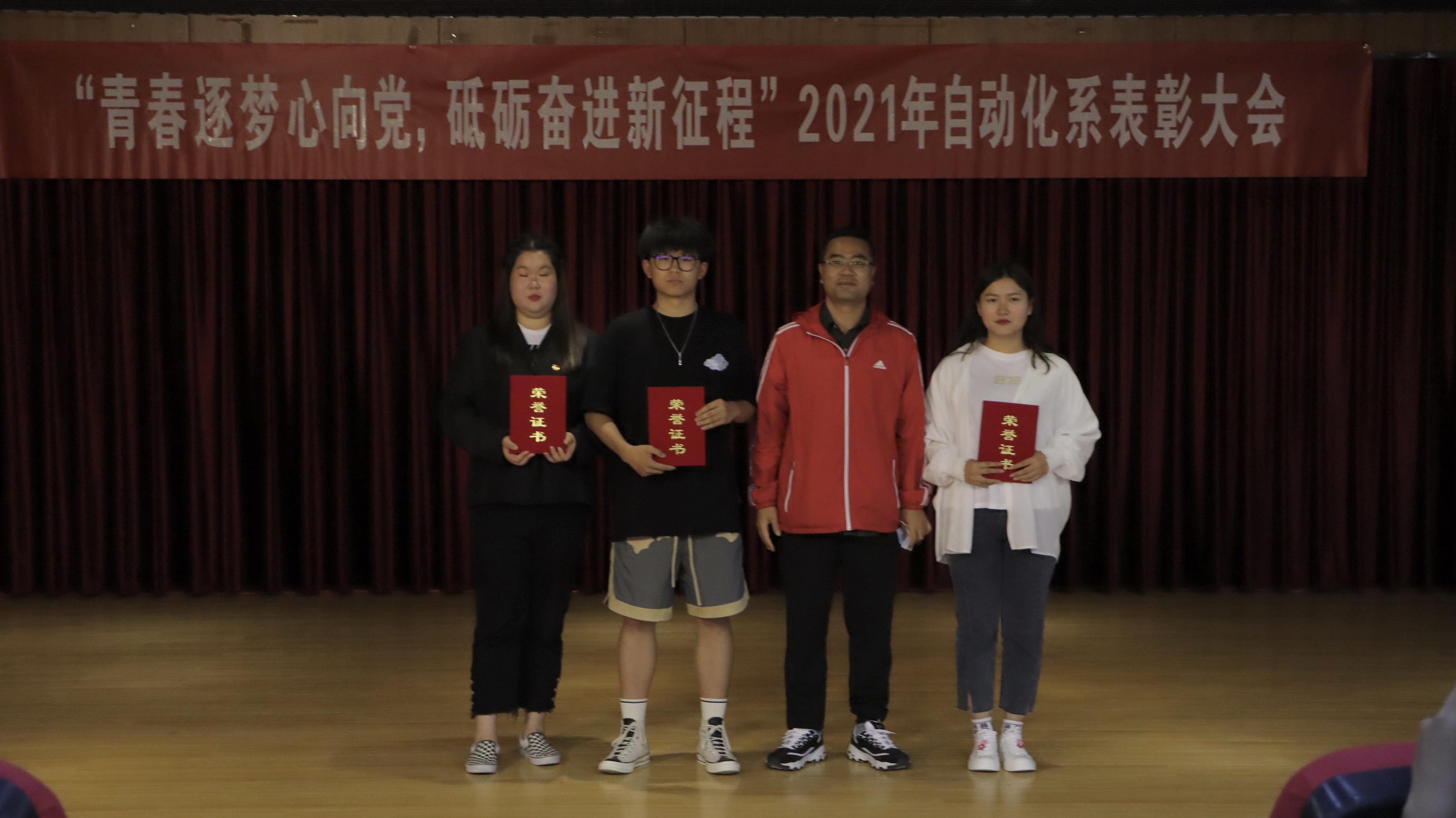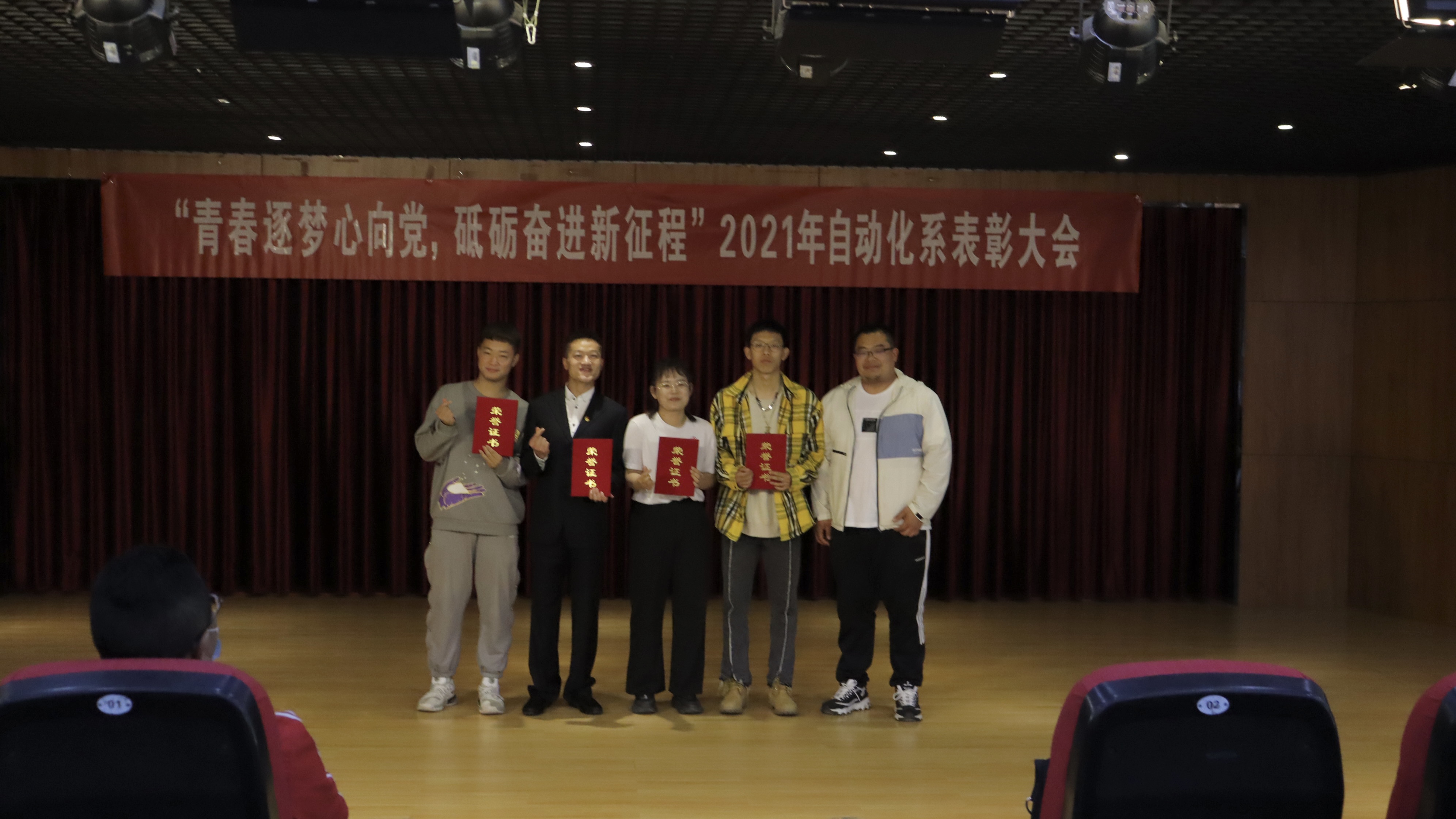 為表彰同學們在本學期各項活動中的優異表現,自動化系于2021年6月2日14:30在學思樓127報告廳開展“青春逐夢心向黨,砥礪奮進新征程”自動化系團學活動表彰大會。自動化系副主任郭超、團總支書記徐莉莉,輔導員閆雪、袁未、田佳欣老師、獲獎代表及相關同學共同參加。