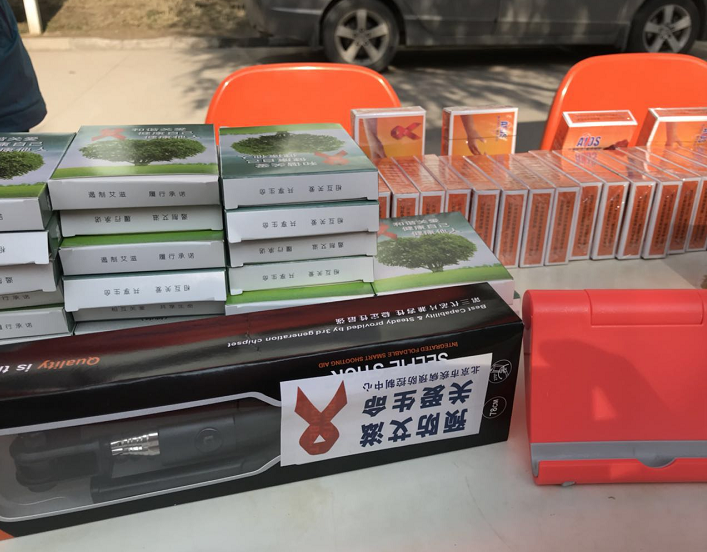 發放的1000余份禁毒防艾紀念品、宣傳冊