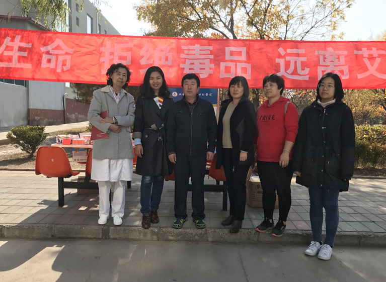 延慶區疾控中心、學院后勤處工作人員在疾控中心吳主任的帶領下,通過懸掛標語、發放禁毒防艾知識手冊、紀念品等方式,向過往師生介紹禁毒防艾知識、呼吁大家提高禁毒防艾意識。(后勤管理與服務處魏靜 供稿)
