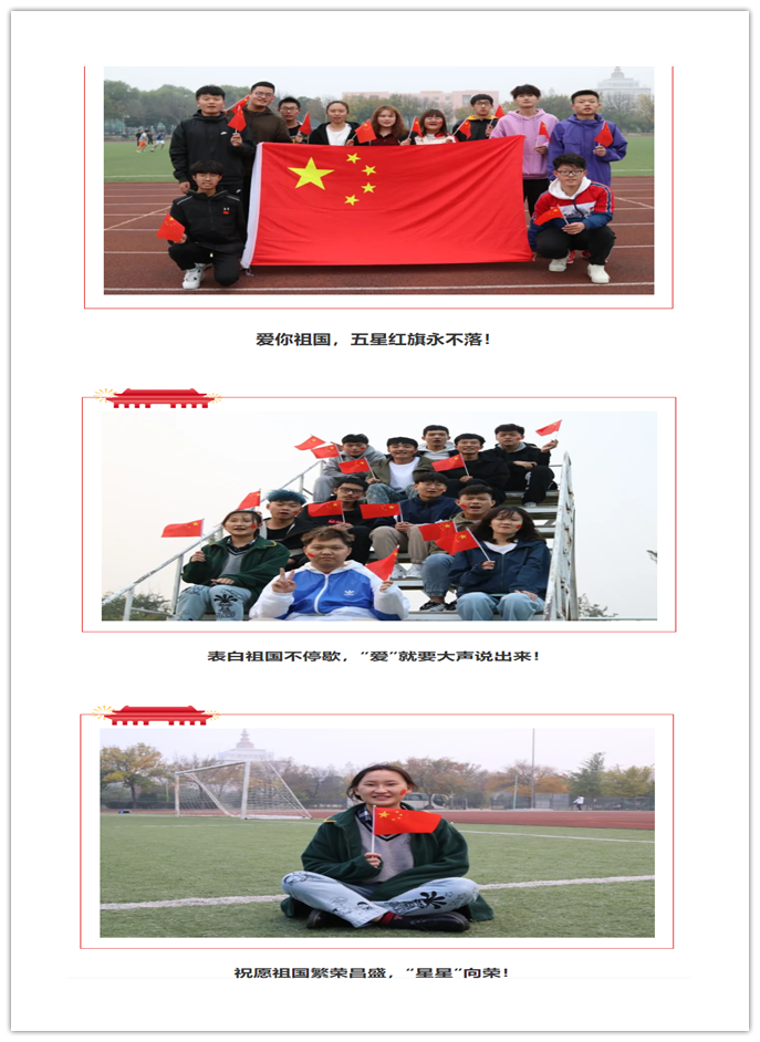 今年國慶期間,計科系學生紛紛與國旗合影,表達了自己對偉大祖國的美好祝愿和對國旗的敬畏,并祝福祖國繁榮昌盛!活動中留下的一張張照片,無一不凝聚著計科系學生對祖國的誠摯熱愛與真情祝愿。“與國旗同框”是一種最樸實的愛國行為,這不僅僅是一張照片,更是一份擔當和責任。當我們為國旗驕傲自豪的時候,更需要傳承愛國之情、弘揚報國之志,在問題面前披荊斬棘,在困難面前翻山越嶺,扛起時代的重任,為偉大的祖國貢獻自己堅實的力量。