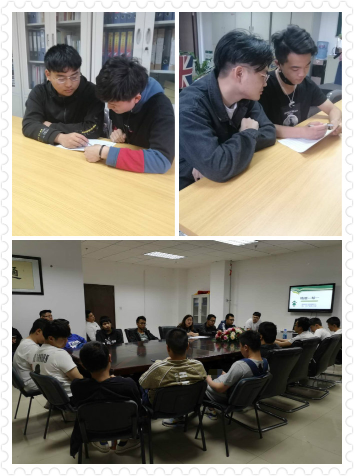 首先輔導員聶斌老師講明本次活動的意義,由于學院從2018級學生開始就取消了大四的清考,因此每次考試機會對同學們來說都非常重要。為加強學風建設,幫助學習困難學生養成良好的學習習慣和方法,引導優秀學生發揮互幫互助精神,各班進行了摸底調查,采取主動報名相結合,有28對同學結成了幫扶小組,開展了精準一幫一活動。