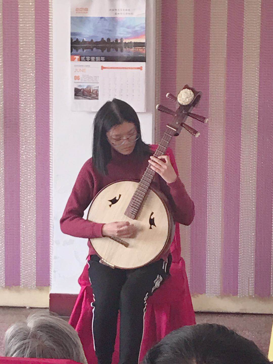 龍聚山莊村委會郭主任和養老院王院長對志愿者一行的到來表示歡迎和感謝。演出中,志愿者們獻上精心編排的合唱歌曲、黃梅戲、樂器獨奏、詩歌朗誦、歌曲等。其中,笛子獨奏《揚鞭催馬運糧忙》不僅讓老人們飽享了聽覺盛宴,更是仿佛回到了崢嶸歲月。