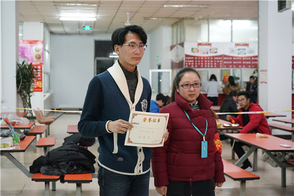 學生食堂劉成經理為獲獎參賽隊頒獎