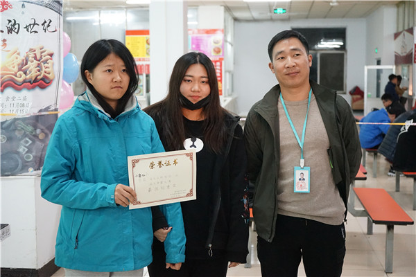 經濟管理系輔導員周龍老師為獲獎參賽隊頒獎