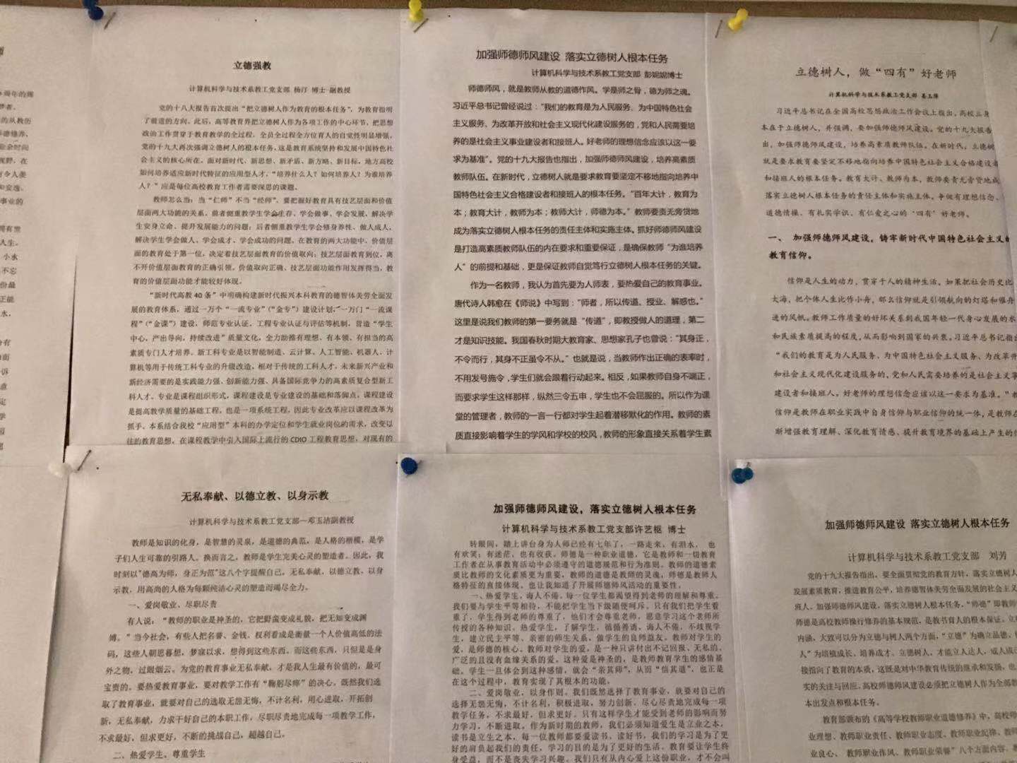 此次活動向全系教職工傳遞了立德樹人的正能量,進(jìn)一步加強(qiáng)了師德師風(fēng)建設(shè)和教師隊伍建設(shè)。通過此次征文活動使全體教職工認(rèn)識到新時期加強(qiáng)師德師風(fēng)建設(shè)上的重要性和緊迫性;要以習(xí)近平新時代中國特色社會主義思想為指導(dǎo),切實提高自己的思想政治素質(zhì);要加強(qiáng)自身師德建設(shè),增強(qiáng)教師教書育人的責(zé)任感和使命感;要不忘初心,牢記使命,積極探索,拓展教師思想政治工作的有效途徑。 (計算機(jī)科學(xué)與技術(shù)系教工黨支部供稿)
