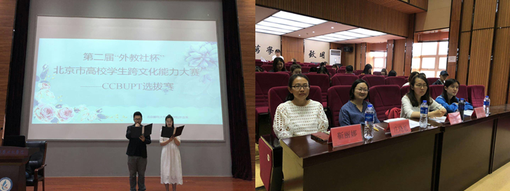 本項賽事是北京市級和我校重點支持的學科競賽活動,6月4日下午5點整,我校在圖書館三層報告廳成功組織了第二屆“外教社”杯北京高校學生跨文化能力大賽校內選拔賽。出席本次活動的評委老師與嘉賓有——外語系團總支書記靳麗娜老師、外語系英語專業教研室的王佩玉老師、大學英語教研室的秦榮及莊曉旭老師。