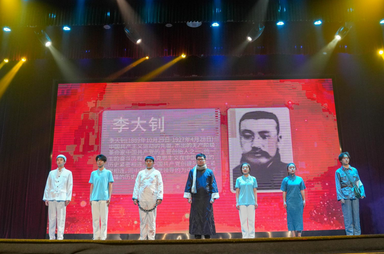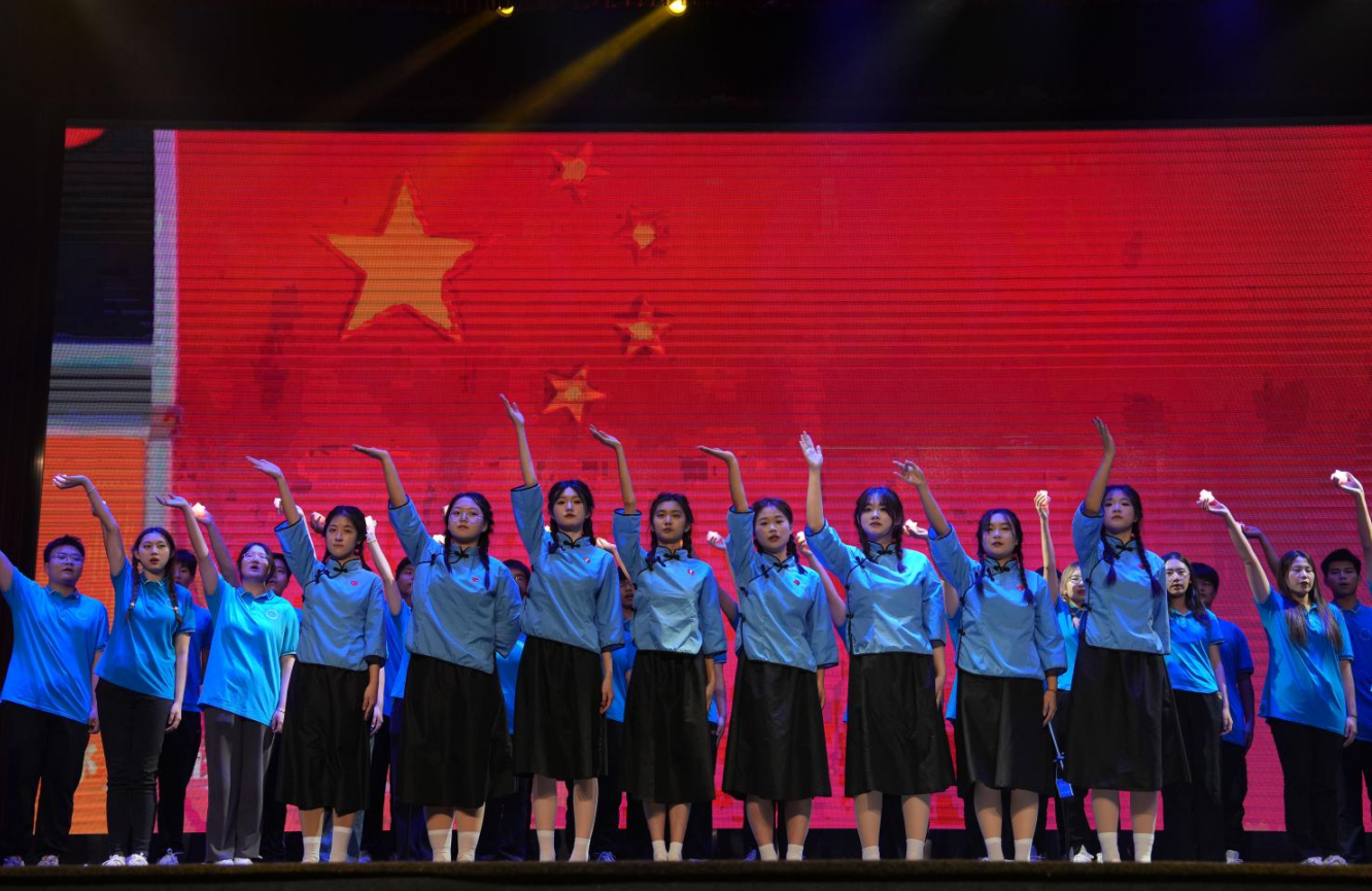 由學院各級團學組織、學生社團組成的演員團為全場觀眾帶來了精彩的表演,近三百余名世紀學子用合唱、舞臺劇、舞蹈、朗誦等多種表演形式,演繹了那段奠基立業、開辟未來的偉大征程,講述了百年來艱苦卓絕、氣吞山河的壯麗史詩,展現了新時代世紀學子的精神面貌和使命擔當,為觀眾展開一幅波瀾壯闊的歷史畫卷,更為廣大師生帶來一堂沉浸式的黨史教育課。