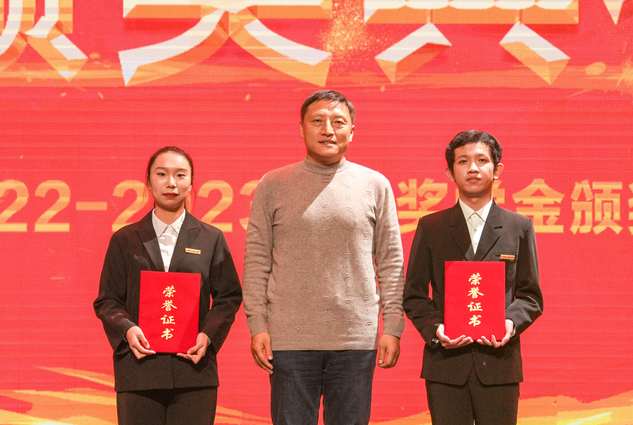 學院黨委副書記、副院長孫凱為獲得國家勵志獎學金的同學頒獎并合影留念