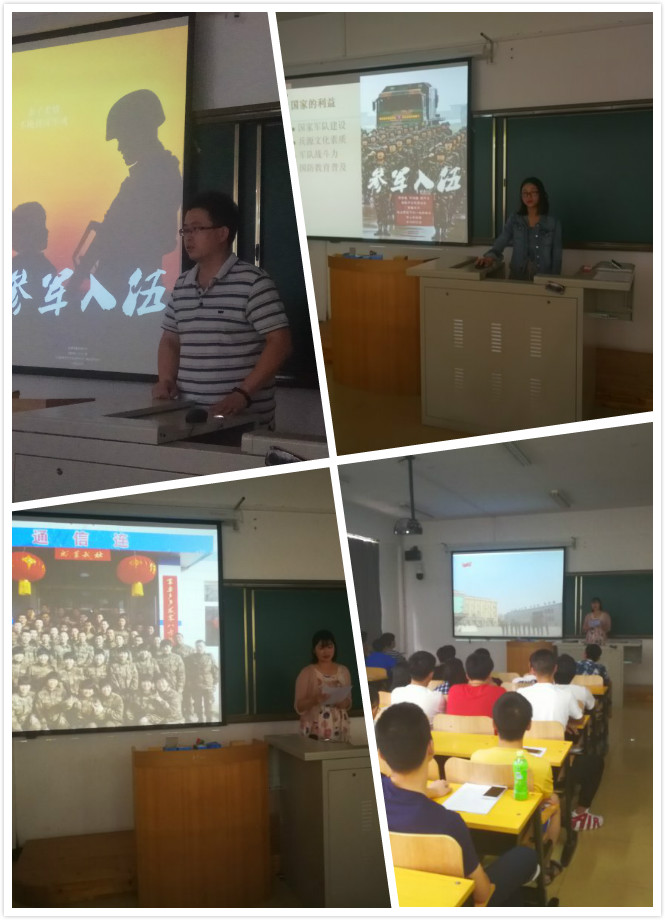 為積極響應黨和國家的號召,進一步落實我院2017年度大學生征兵工作安排,營造學生積極入伍、攜筆從戎的良好應征氛圍,培養大學生胸懷祖國、獻身國防的精神,6月7日,學生處武裝部舉行了2017年大學生應征入伍征兵政策宣講會。學生處副處長岳鑫、武裝部孟文琦老師、大學生士兵協會成員以及有意愿入伍的同學參加了此次宣講會。